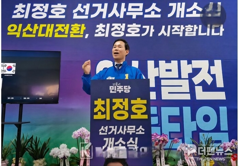 더불어민주당 최정호 익산시장 예비후보가 선거사무소 개소식을 열고 본격적인 선거 행보에 나섰다.