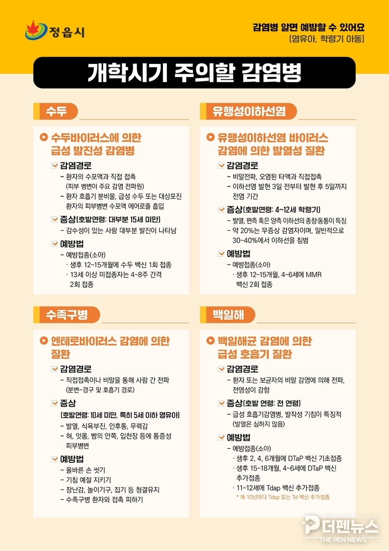 17일 시에 따르면 학령기 소아·청소년 사이에서 발생 빈도가 높은 인플루엔자, 수두, 유행성이하선염, 백일해 등은 밀집된 학교 환경에서 급격히 퍼지는 특성이 있어 가정과 학교의 각별한 주의가 요구된다.