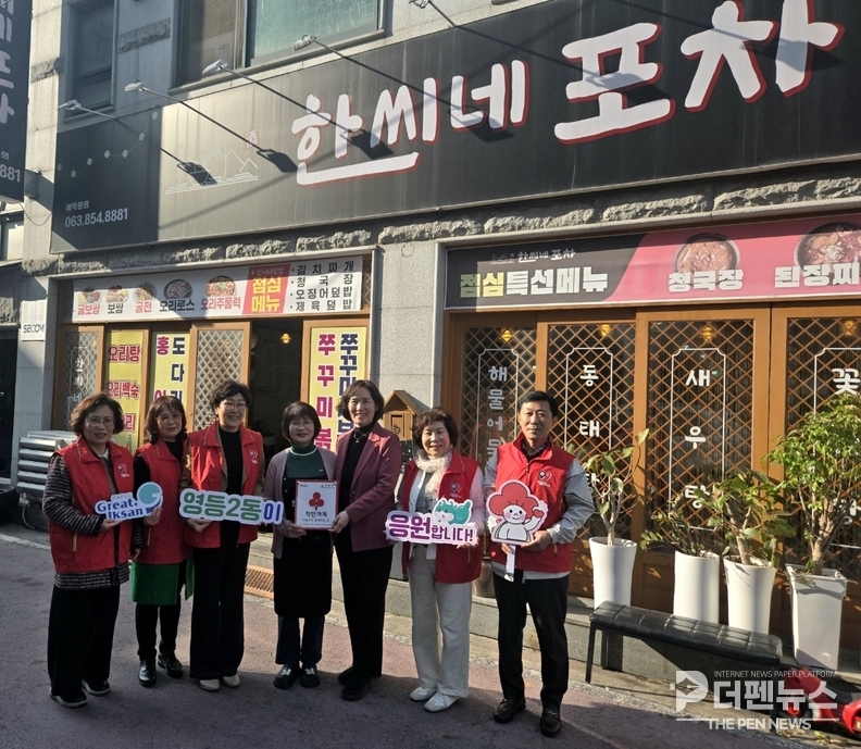 익산시 영등2동 지역사회보장협의체는 19일 지역 음식점 ‘한씨네 포차’를 찾아 착한가게 현판을 전달하고 정기기부 참여에 대한 감사의 뜻을 전했다. 착한가게는 자영업자가 매월 일정 금액을 기부해 지역 내 취약계층을 지원하는 민간 중심의 나눔 프로그램이다.