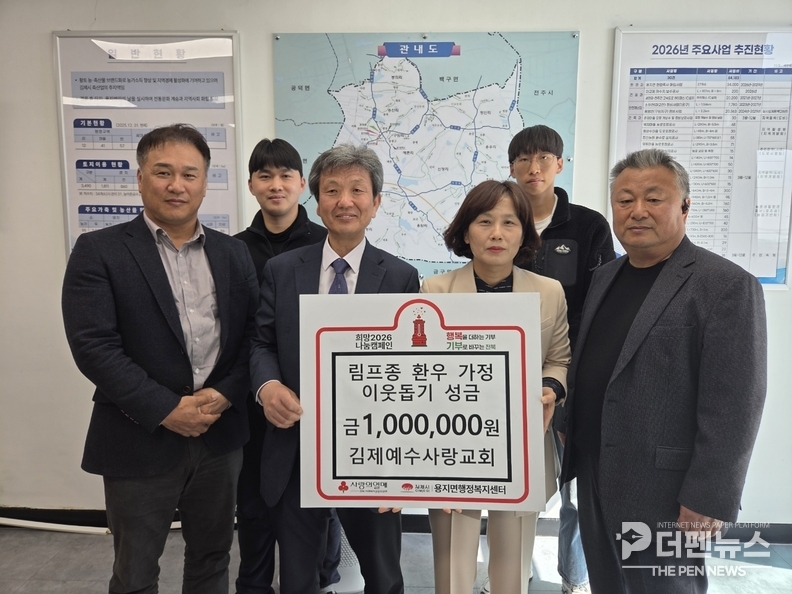 김제시 용지면 행정복지센터는 김제예수사랑교회가 지난 20일 림프종 환우 가정을 돕기 위한 성금 100만원을 기부했다고 밝혔다. 이번 성금은 환자와 가족의 치료비와 생활비 부담을 덜어주기 위해 교회 성도들이 자발적으로 뜻을 모아 마련한 것이다.