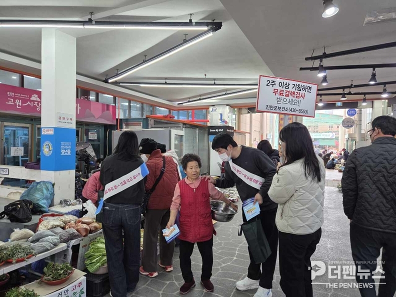 진안군이 결핵예방의 날을 맞아 전통시장에서 결핵 조기검진과 예방수칙 실천을 알리는 현장 캠페인에 나섰다.