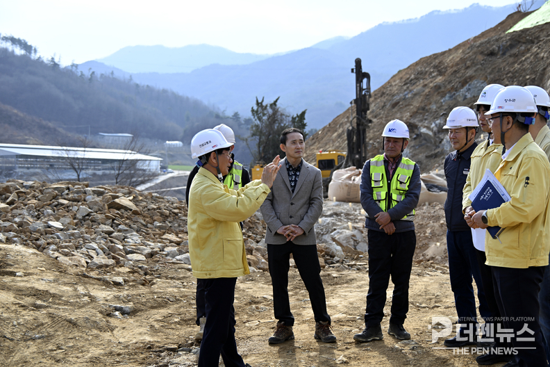 전북 장수군이 하이패스IC 연결도로 개설사업 현장을 점검하며 해빙기 안전사고 예방과 주요 기반시설 사업의 추진 상황을 재확인했다.