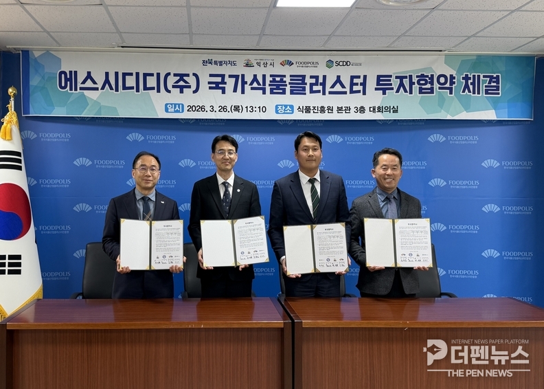 익산시는 26일 국가식품클러스터 입주기업인 에스시디디㈜와 제3공장 건립을 위한 투자협약을 체결했다고 밝혔다. 이번 협약은 동일 기업이 세 번째로 투자를 결정한 사례로, 클러스터 내 기업 정착 기반이 안정적으로 작동하고 있음을 보여주는 지표로 해석된다.