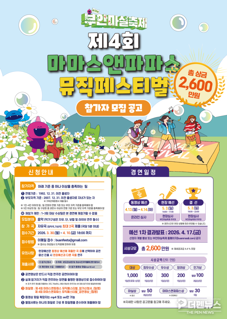 올해 대회는 총상금 2600만원 규모로 진행된다. 해를 거듭할수록 참가 열기와 관심이 높아지며 전국 단위 음악 경연으로 자리 잡고 있다는 평가다.