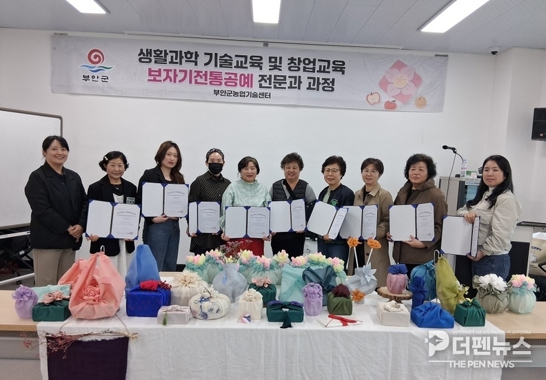 부안군농업기술센터는 상반기 생활과학기술교육으로 운영한 ‘보자기전통공예전문가 과정’을 마무리하고, 성과전시회와 함께 수료식을 개최했다고 밝혔다.