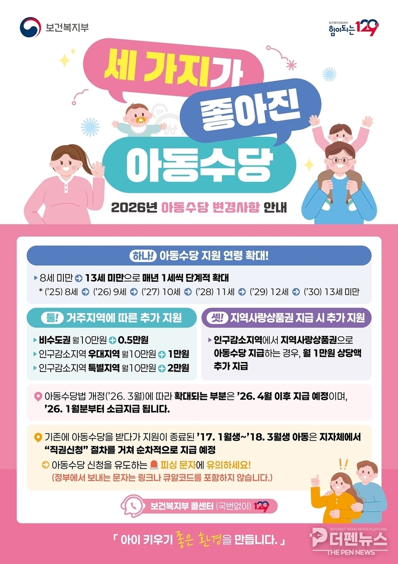 이학수 정읍시장은 “초등학생 자녀를 둔 가정의 체감 물가 부담이 큰 상황에서 이번 아동수당 확대가 실질적인 보탬이 되길 바란다”며 “정읍만의 강력한 인구 정책과 복지 인프라를 결합해 '아이 키우기 가장 좋은 도시'라는 명성을 확고히 다져나가겠다”고 강조했다.
