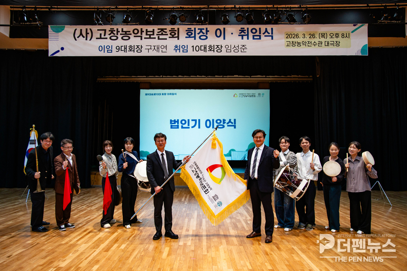 고창농악보존회는 지난 3월 26일 고창농악전수관 대극장에서 제9대·제10대 회장 이·취임식을 개최했다고 밝혔다. 행사에는 김영식 고창군 부군수와 군의회 의장을 비롯해 지역 인사, 농악 관계자, 회원 등 다수가 참석해 자리를 함께했다.