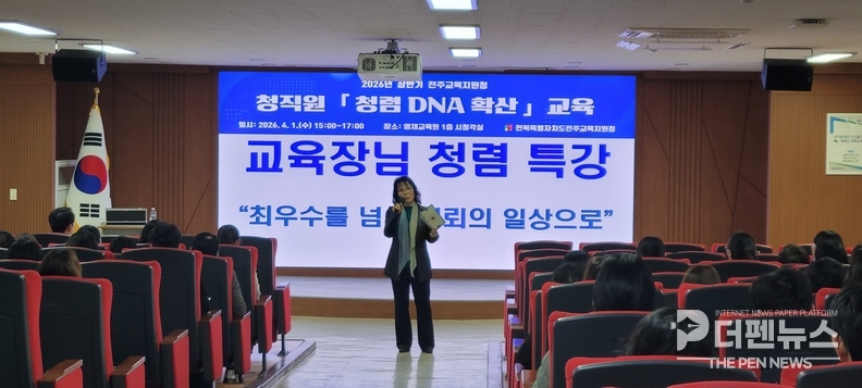 1일 전북특별자치도전주교육지원청(교육장 채선영)에 따르면 이날 영재교육원 시청각실에서 전 직원이 참석한 가운데, 공직 윤리 의식을 고취하고 투명한 조직 문화를 조성하기 위한 ‘2026년 상반기 청렴 DNA 확산 교육’을 성공적으로 마쳤다.