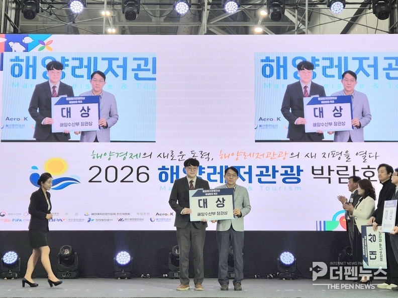 군산시 항만해양과는 해양수산부가 주관한 ‘2026 해양레저관광 박람회’에서 ‘해양레저관광 대상’을 수상하고 해양수산부장관 표창을 받았다고 밝혔다. 시상식은 4월 2일 인천 송도 컨벤시아에서 열렸다.
