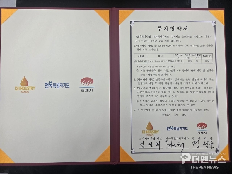 김제시는 전북특별자치도와 함께 도장 전문기업 ㈜디제이산업과 54억 원 규모의 투자협약을 체결했다. 이번 협약은 단순한 공장 신설을 넘어, 산단 구조를 재편하는 시도로 읽힌다.