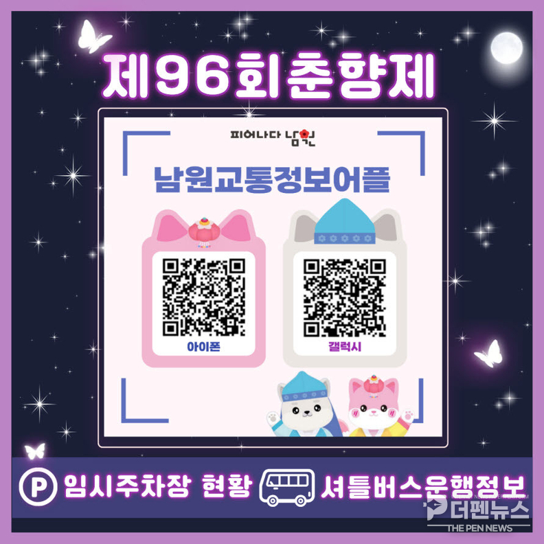 시는 4월 30일부터 5월 6일까지 열리는 제96회 춘향제 기간 동안 임시주차장과 셔틀버스 운행 정보를 실시간으로 제공하는 모바일 교통정보 애플리케이션을 운영한다고 3일 밝혔다. 축제장 방문객이 몰리는 시기마다 반복되는 교통 혼잡을 줄이고, 보다 효율적인 이동을 돕기 위한 조치다.