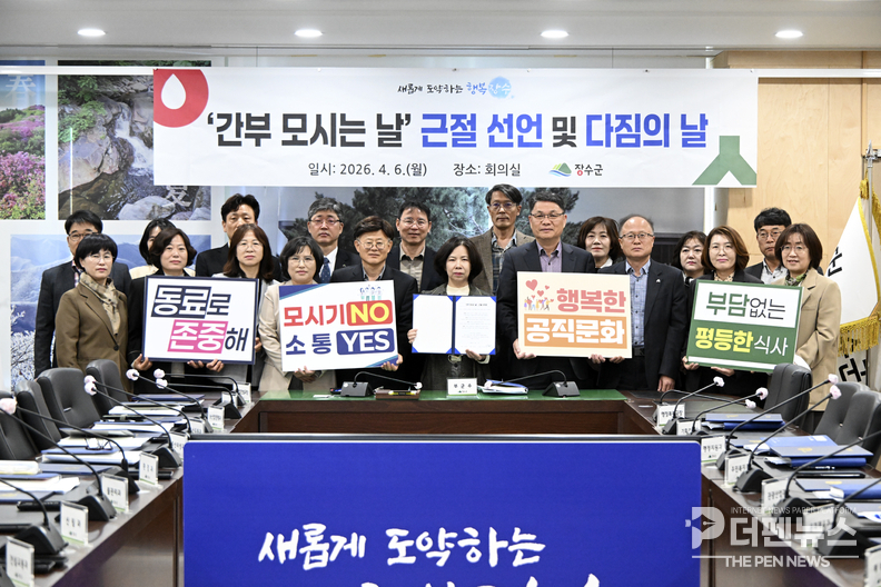 장수군이 공직사회에 남아 있는 관행적 의전 문화를 개선하기 위해 ‘간부 모시는 날’ 근절을 공식 선언하고 조직문화 혁신에 나섰다. 간부공무원들이 직접 참여해 변화 의지를 밝히면서 수평적 조직문화 정착에 대한 기대감이 커지고 있다.