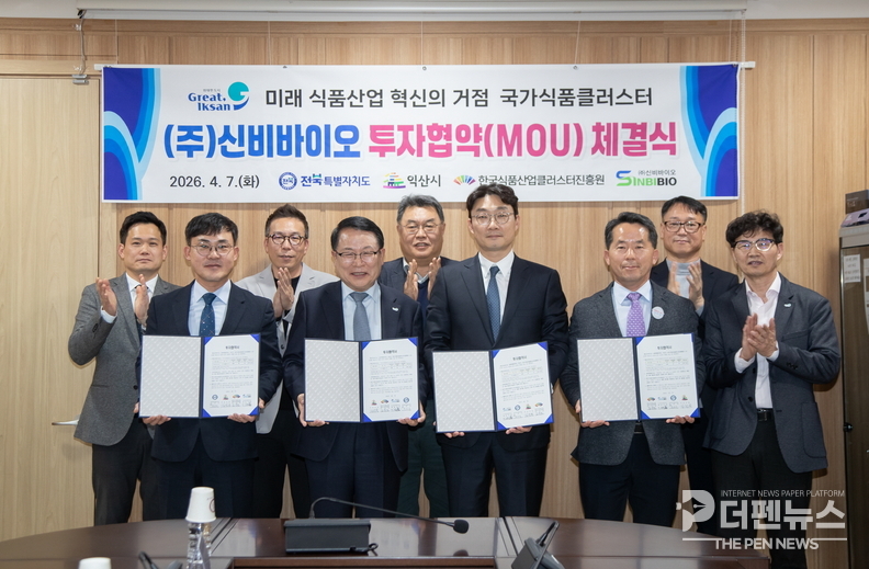전북 익산시는 7일 건강기능식품 제조기업인 신비바이오와 국가식품클러스터 투자협약을 체결했다. 협약에는 전북특별자치도와 한국식품산업클러스터진흥원도 참여해 기업 유치와 산업 기반 확장에 힘을 보탰다.