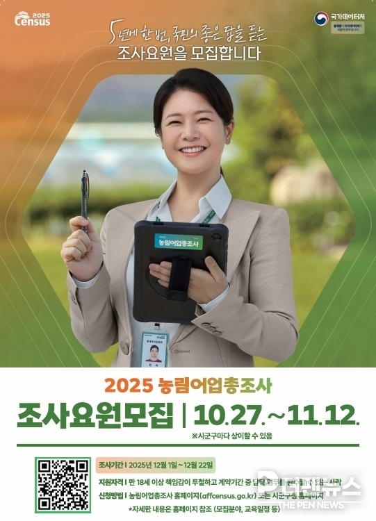 지원 기간은 이달 17일까지이며, 선발된 인력은 사전 교육을 거쳐 오는 6월 12일부터 7월 22일까지 진행되는 사업체 대상 현장 조사에 참여하게 된다.