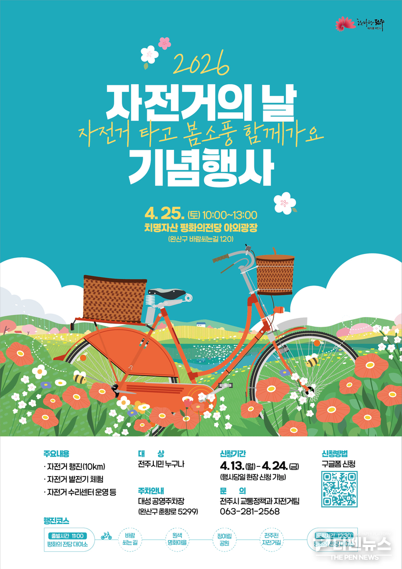 전주시는 오는 25일 치명자산 평화의전당 야외광장에서 ‘2026년 자전거의 날 기념행사’를 개최한다고 밝혔다.