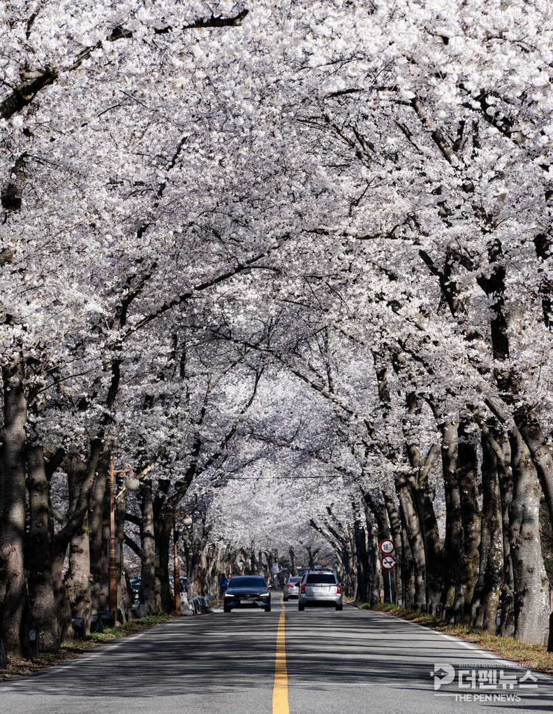 특히 이산묘에서 탑사까지 이어지는 약 2.5㎞ 구간의 벚꽃 터널은 절정의 풍경을 연출하고 있다. 도로를 따라 이어진 벚꽃이 하늘을 덮듯 펼쳐지며, 마이산 특유의 암봉 지형과 어우러져 이색적인 봄 풍경을 완성한다.