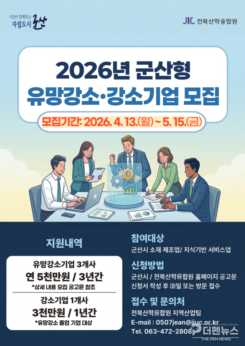 군산시는 ‘2026년 군산형 유망 강소 및 강소기업’ 모집에 들어갔다고 밝혔다.