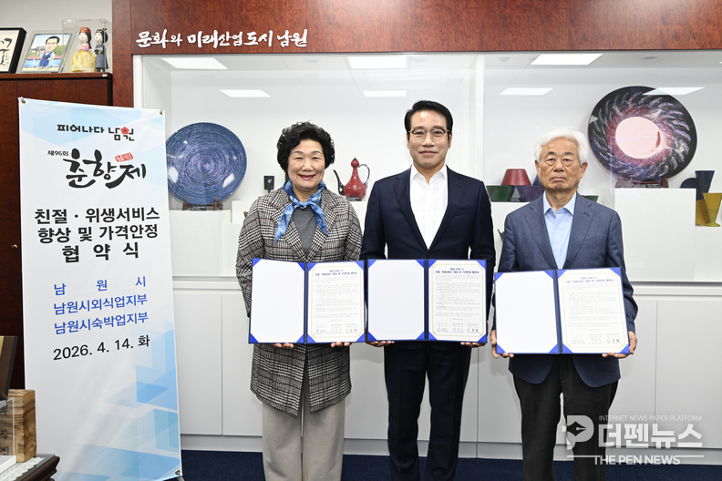 남원시는 14일 한국외식업중앙회 남원시지부와 대한숙박업중앙회 남원시지부와 업무 협약을 체결하고, 축제 기간 공정한 가격 질서와 위생 관리 체계 구축에 뜻을 모았다.