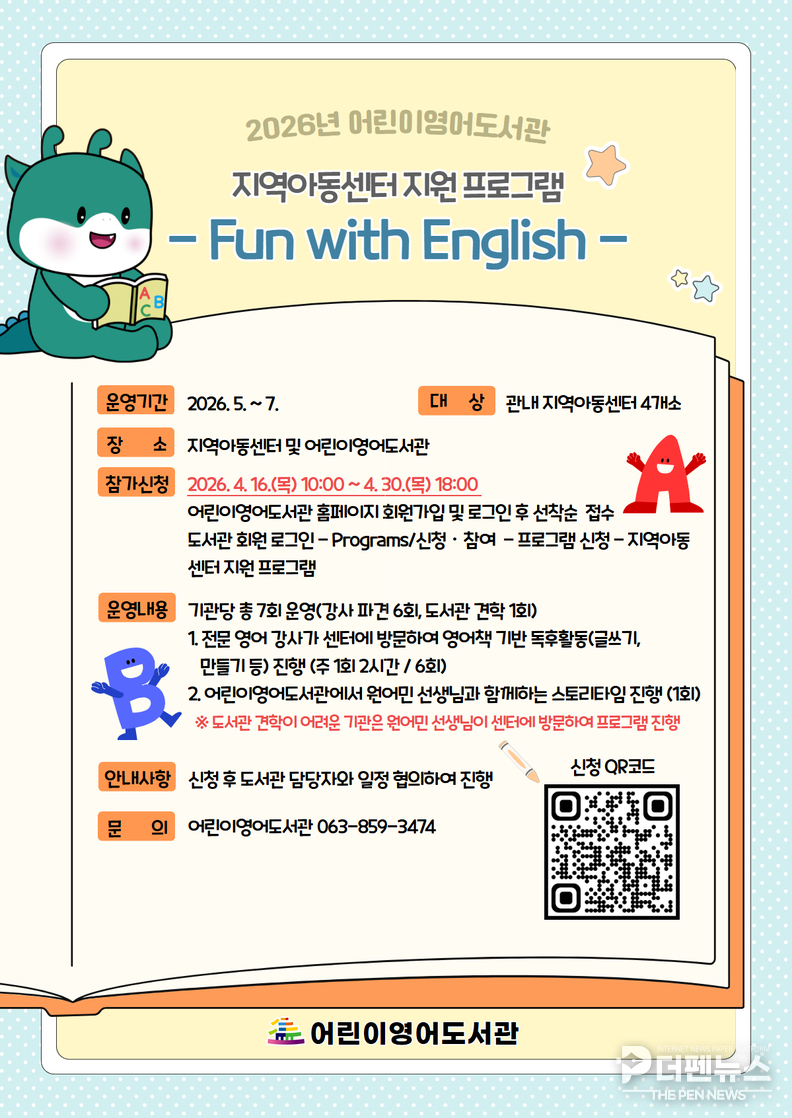 영어 강사가 직접 시설을 방문해 독서와 체험을 결합한 수업을 운영하는 방식으로, 총 6회 과정으로 구성된다. 여기에 원어민 강사가 참여하는 영어 그림책 수업도 함께 제공된다.