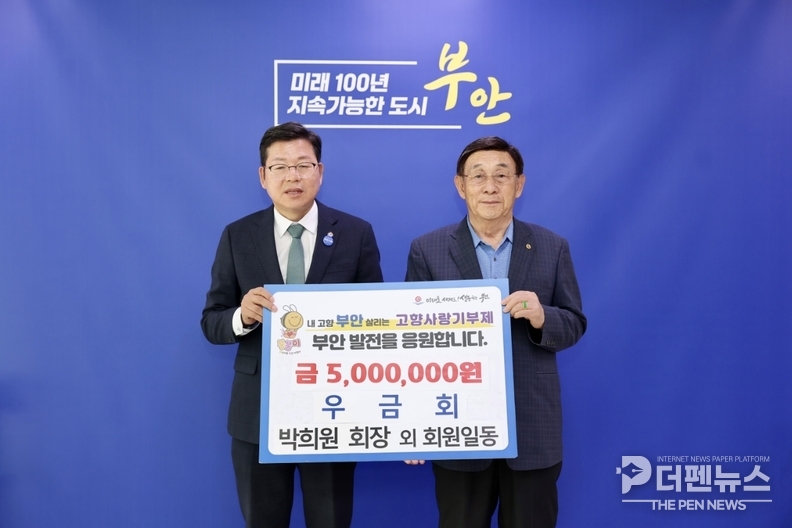 재경부안군향우회 우금회가 고향 부안을 위해 고향사랑기부금 500만 원을 기탁했다. 수도권에서 활동하는 기업인과 전문가 모임이 고향 발전을 위한 나눔에 나선 것이다.