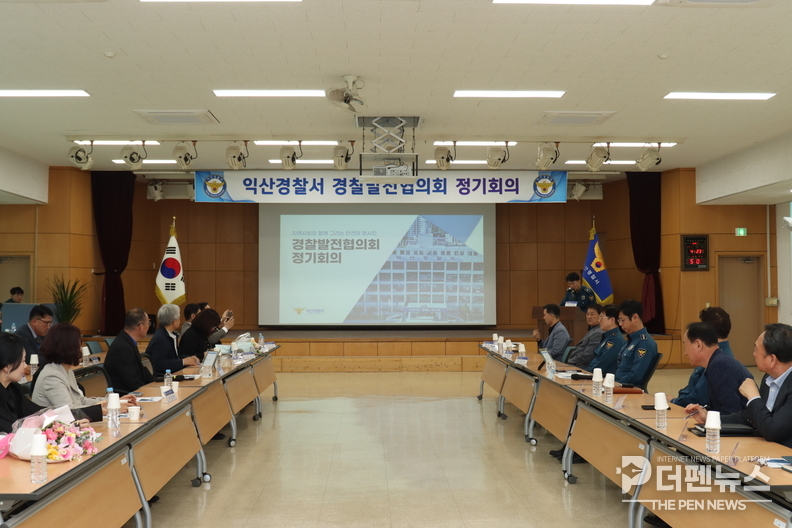 익산경찰서는 지난 23일 경찰서 5층 대동마루에서 ‘익산경찰발전협의회 정기회의’를 개최하고 주요 치안현황과 중점 추진업무를 공유했다. 이날 회의에는 협의회 위원과 경찰 관계자들이 참석해 지역 치안 환경 변화에 따른 대응 전략과 개선 방안을 논의했다.