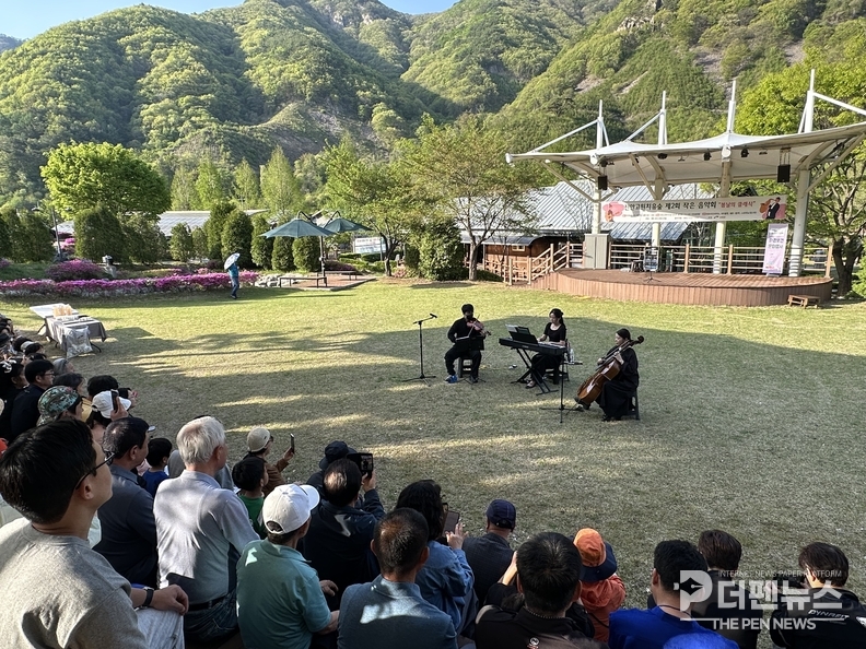 공연에는 바이올린·피아노·첼로 3중주 ‘휴트리오’와 소프라노 김나라가 참여해 클래식 명곡을 선보였다. 울창한 숲을 배경으로 한 무대는 공연의 몰입도를 높이며 관람객들에게 색다른 감상 경험을 제공했다.