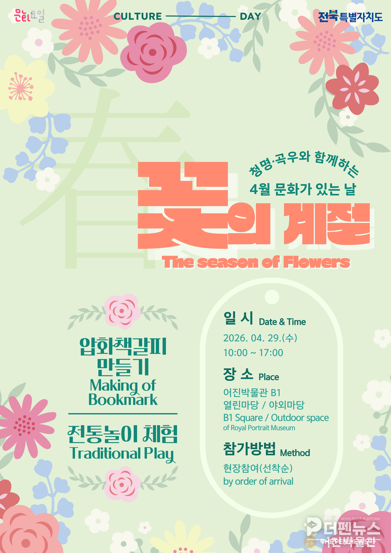 하재식 전주시 국가유산관리과장은 “누구나 쉽게 참여할 수 있는 프로그램을 마련했다”며 “박물관에서 준비한 체험을 통해 꽃의 계절이 주는 의미를 느끼는 시간이 되길 바란다”고 말했다.