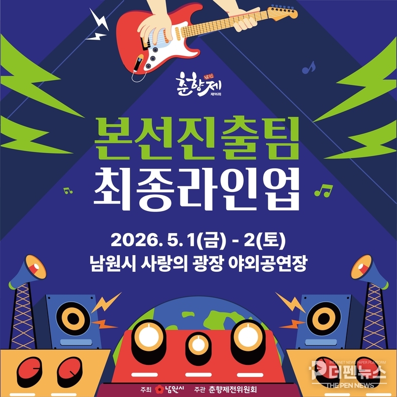 한편 제96회 춘향제 전국 밴드 경연대회 ‘풍ROCK을 울려라!’는 5월 1일부터 2일까지 남원 사랑의 광장 야외공연장에서 진행되며, 전 세대가 함께 즐기는 참여형 음악 축제로 주목받고 있다.