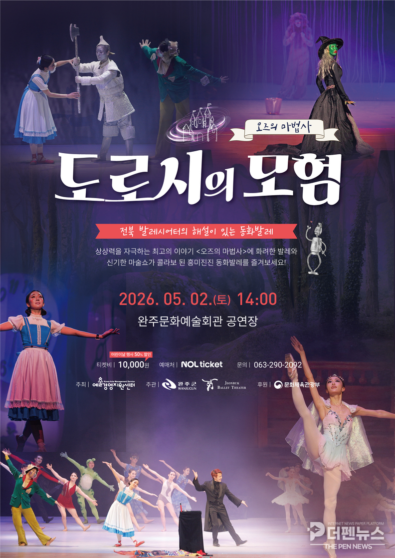 완주군은 오는 5월 2일 완주문화예술회관에서 동화 발레 ‘도로시의 모험’을 선보인다고 29일 밝혔다. 이번 공연은 전북 발레시어터가 참여해 해설이 있는 형식으로 진행된다.