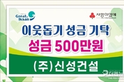 익산시는 9일 ㈜신성건설(대표 이용호)로부터 이웃돕기 성금 500만 원을 기탁받았다고 밝혔다. 이번에 전달된 성금은 경제적 어려움을 겪고 있는 익산지역 저소득층 가구의 생활 안정과 복지 증진을 위해 사용될 예정이다. 이용호 신성건설 대표는 “지역사회로부터 받은 사랑을 다시 지역에 환원하고자 기부를 결정했다”며 “작은 정성이지만 어려운 이웃들에게 힘이 되길 바라고, 앞으로도 지역과 함께하는 나눔 활동을 이어가겠다”고 말했다. 익산시 관계자는 “지역사회를 위해 따뜻한 나눔을 실천해 준 신성건설에 감사드린다”며 “기탁된 성금은 도움이 필요한 저소득층 가구에 소중히 전달하겠다”고 밝혔다. 전주시에 본사를 둔 신성건설은 주택을 비롯한 각종 건설사업을 수행하며 안정적인 경영을 이어오고 있다. 지역사회와의 상생을 중요 가치로 삼아, 나눔과 사회공헌 활동을 통해 기업의 사회적 책임을 실천하고 있다. 더펜뉴스 최민성 기자 저작권자 ⓒ 더펜뉴스 인터넷신문 무단전재 및 재배포 금지