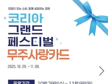 무주군은 오는 29일부터 11월 9일까지 진행되는 ‘코리아 그랜드 페스티벌’ 기간 동안 무주사랑상품권을 최대 20% 할인된 혜택으로 이용할 수 있다고 밝혔다. ‘코리아 그랜드 페스티벌’은 산업통상자원부와 중소벤처기업부 등 정부 부처가 공동 주관하는 국가 단위 대규모 할인 행사다. 행사 기간 동안 무주사랑상품권을 구매하면 기존 15% 선할인에 추가 5% 캐시백이 더해져 최대 20%의 할인 혜택을 받을 수 있다. 캐시백은 무주사랑카드로 결제 시 고향사랑페이 앱(APP)을 통해 즉시 자동 적립되며, 지류 상품권과 정책 수당 결제는 제외된다. 황인홍 무주군수는 “무주군은 9월부터 무주사랑상품권 한도를 100만 원까지 상향하고 할인율을 15%로 확대했다”며 “이번 캐시백까지 더하면 최대 20% 할인 혜택을 누릴 수 있는 만큼, 상품권으로 장도 보고 외식과 여가 생활도 즐기시길 바란다”고 말했다. 이어 황 군수는 “이번 행사가 주민들의 가계 부담을 덜고, 무주를 찾는 관광객에게 유용한 혜택을 제공하며, 지역 상권 활성화에도 기여할 것”이라고 덧붙였다. 한편, 페스티벌 관련 프로그램, 지역별 행사, 할인 혜택 등 자세한 내용은 ‘코리아그랜드페스티벌.kr’ 또는 카카오톡