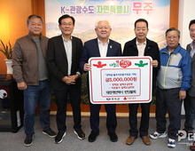 무주군 출향인들로 구성된 대전 개인택시 반딧불회가 고향 무주를 위해 따뜻한 나눔을 이어가고 있다. 반딧불회 회원들은 지난 29일 무주군청을 방문해 장학금 150만 원과 이웃돕기 성금 150만 원 등 총 300만 원을 기탁했다. 대전 개인택시 반딧불회는 무주 출신 택시 기사들의 친목 단체로, 매년 택시 외부 광고와 전단지 배포를 통해 ‘무주반딧불축제’, ‘무주산골영화제’, ‘자연특별시 무주 관광’, ‘반딧불 농·특산물’, ‘무주반딧불사이버장터(www.mj1614.com)’, ‘고향사랑기부제’ 등을 알리며 ‘달리는 무주 홍보맨’으로 활약하고 있다. 이들은 2017년부터 꾸준히 장학금과 불우이웃돕기 성금을 기탁해 왔으며, 올해 6월에도 300만 원을 전달하는 등 지금까지 총 950만 원을 기부했다. 이종선 반딧불회 회장은 “자연과 사람이 아름다운 무주가 고향이라는 사실이 늘 자랑스럽다”며 “이번 장학금이 학생들에게 희망의 씨앗이 되길 바란다”고 말했다. 이어 “회원들이 운전하는 택시 50대가 앞으로도 대전 시내 곳곳을 달리며 무주를 널리 알리는 역할을 이어가겠다”고 덧붙였다. 더펜뉴스 최은화 기자 저작권자 ⓒ 더펜뉴스 인터넷신문 무단전재 및 재배포 금지