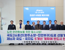 전북특별자치도 시장·군수협의회가 국도 26호선 완주 소양~진안 부귀 구간의 도로 선형개량 사업을 국가 건설계획에 반영해 달라고 중앙정부에 촉구했다. 협의회는 26일 장수군에서 민선8기 4차년도 제3차 회의를 열고 해당 구간을 제6차 국도·국지도 5개년 건설계획에 포함해야 한다는 데 뜻을 모았다. 전춘성 진안군수는 “완주 소양에서 진안 부귀 구간은 급커브와 급경사 구간이 이어지는 대표적인 선형 불량 구간”이라며 “교통사고 위험이 상존하는 만큼 도민의 생명과 안전 확보를 위해 국가 차원의 사업 반영이 필요하다”고 말했다. 국도 26호선은 전북 동부권을 연결하는 핵심 간선도로다. 관광과 물류, 생활권 이동의 주요 축임에도 불구하고 선형이 불량해 통행 안전성과 효율성 문제가 지속적으로 제기돼 왔다. 해당 구간은 과거 제5차 국도·국지도 건설계획 수립 과정에서 일괄 예비타당성 조사 대상에 포함됐으나, 경제성 등의 이유로 최종 선정되지 못했다. 협의회는 “단순 경제성 논리를 넘어 안전과 균형발전 관점에서 재평가가 필요하다”고 주장했다. 이날 참석한 시장·군수들은 “제6차 5개년 건설계획에는 반드시 반영돼야 한다”며 공동 건의에 나설 방침을 밝혔다. 더펜뉴스 최은화 기자