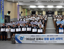 김제시가 2026년을 ‘청렴 도약의 해’로 정하고 전 직원이 참여하는 청렴 실천 결의를 다졌다. 김제시는 3일 시청 대강당에서 전 직원을 대상으로 ‘2026년 청렴 실천 서약 및 결의대회’를 개최했다고 밝혔다. 투명하고 공정한 행정, 갑질 없는 조직문화 조성을 목표로 청렴 의지를 재확인하는 자리였다. 행사는 신규 공직자 대표의 청렴 실천 서약서 낭독과 전 직원 서약서 서명, 단체 사진 촬영 순으로 진행됐다. 참여와 공감을 중심으로 한 실천형 청렴 문화 확산에 초점을 맞췄다. 서약서 낭독은 3월 임용된 교통행정과 김은지 주무관과 농촌활력과 김동주 주무관이 맡았다. 참석자들은 이어 청렴 서약서에 서명하며 청렴 청정도시 조성 의지를 공유했다. 시는 3일부터 17일까지를 부서별 자율 청렴 실천 서약 주간으로 운영해 조직 단위의 실천 의지를 이어갈 계획이다. 아울러 고위직 공무원으로 구성된 청렴정책추진단을 확대 운영하고, ‘1부서 1시책’ 발굴을 통해 구체적인 청렴 정책을 추진한다는 방침이다. 정성주 김제시장은 “올해를 청렴 도약의 해로 삼아 전 직원이 한마음으로 청렴을 실천하겠다”며 “청렴도 향상을 위해 최선을 다하겠다”고 말했다. 더펜뉴스 최민성 기자 저작권자 ⓒ