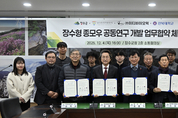 장수군이 장수한우지방공사, 이티바이오텍(주), 전북대학교와 함께 ‘장수형 저탄소 종모우 개발’ 공동연구에 나서며 한우 산업의 고급화와 친환경 전환에 본격적인 속도를 내고 있다. 장수군은 11일 군청 회의실에서 4개 기관과 공동연구 상호협력을 위한 업무협약(MOU)을 체결했다고 밝혔다. 이번 협약은 장수 지역의 사양 환경에 적합한 우수 유전자원을 확보하고, 탄소배출을 줄이면서도 생산성과 품질을 높일 수 있는 장수형 종모우 개발을 목표로 추진된다. 특히 종모우 개발을 통해 장수한우 고유의 유전형질을 확립하고, 탄소저감·생산성 향상을 동시에 달성하는 것이 핵심 전략으로 제시됐다. 협약에 따라 장수군은 사업 총괄 및 행정·재정 지원을 맡고, 장수한우지방공사는 채정·가공·사양관리와 농가 컨설팅을 담당한다. 이티바이오텍은 유전체 기반 연구개발을, 전북대학교는 유전 능력 평가와 우량 암소·후보 종모우 선발을 각각 수행한다. 군은 이번 연구를 최근 지정된 전북특별자치도 농생명산업지구 내 ‘저탄소한우 산업지구’ 조성사업과 연계해 2030년까지 단계적으로 추진할 계획이다. 개발된 종모우의 정액은 지역 한우농가에 우선 공급해 현장 적용성과 실효성을 확보한 뒤, 동부권 중심으로