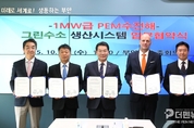 부안군(군수 권익현)은 29일 부안군청에서 전북특별자치도, 현대자동차, 현대건설, 전북테크노파크와 함께 ‘1MW급 PEM(고분자 전해질막) 수전해 그린수소 생산시스템’ 구축을 위한 업무협약(MOU)을 체결했다고 밝혔다. 이번 협약은 국내 독자 기술로 개발된 PEM 수전해 시스템을 부안군 수소도시 조성사업의 핵심 인프라로 구축하고, RE100 기반의 분산형 수소 생산·공급 모델을 운영하기 위해 추진됐다. 시스템은 부안군 내 재생에너지를 활용해 청정 수소를 생산하고, 이를 지역 수소모빌리티와 산업단지에 공급하는 역할을 하게 된다. 협약식에는 권익현 부안군수, 배주현 전북자치도 청정에너지수소과장, 팔코 베르그 현대자동차 상무, 서유택 현대건설 상무, 이규택 전북테크노파크 원장 등 관계자들이 참석했다. 권 군수는 “이번 협약은 국내 독자 기술을 바탕으로 부안군이 수소를 직접 생산·활용하는 탄소중립 선도도시로 도약하기 위한 의미 있는 첫걸음”이라며, “지속 가능한 수소산업 생태계 조성과 함께 지역경제 활성화, 일자리 창출, 산업기반 확충에 모든 행정력을 집중하겠다”고 말했다. 이번 사업이 완료되면 부안군은 국내 최초 지자체-민간 공동 기술 실증형 수소도시로서 위상을
