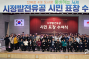 김제시가 한 해 동안 지역사회 곳곳에서 묵묵히 헌신해 온 시민들의 노고에 감사의 뜻을 전했다. 김제시는 15일 시정 발전에 기여한 유공시민과 가족 등 150여 명이 참석한 가운데 ‘2025년 시정발전 유공시민 표창 수여식’을 열고, 지역 발전과 시민 화합에 힘쓴 모범 시민들을 격려했다. 이날 행사는 각자의 자리에서 김제시를 위해 헌신해 온 시민들의 공로를 기리는 자리로, 따뜻하고 화기애애한 분위기 속에서 진행됐다. 올해 유공 표창은 행정 협력과 지역복지, 자원봉사, 안전·치안, 지역경제, 환경 등 다양한 분야에서 고르게 선정돼 시민 참여로 이뤄진 시정 성과를 다시 한 번 확인하는 계기가 됐다. 특히 오랜 기간 어르신 복지 향상을 위해 봉사활동을 이어온 시민과 청소년 교육·문화 활동을 통해 지역의 미래를 키워온 인물, 환경정화 활동으로 쾌적한 도시 환경 조성에 기여한 단체들이 표창을 받았다. 이와 함께 지역경제 회복을 위해 현장에서 힘을 보탠 소상공인과 지역기업 관계자들도 수상자 명단에 이름을 올리며, 현장 중심의 헌신과 노력이 공식적으로 인정받았다. 정성주 김제시장은 인사말에서 “올 한 해 김제시가 의미 있는 성과를 낼 수 있었던 것은 시민 여러분의 헌신과